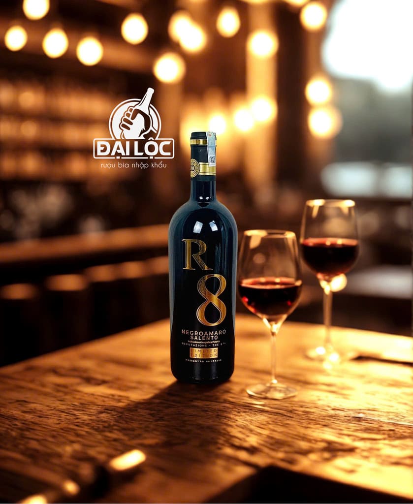 Vang Ý R8 Negroamaro là chai vang đỏ được săn đón bởi những người yêu thích hương vị mạnh mẽ, đậm đặc.