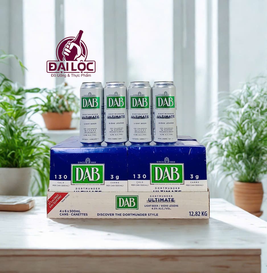 Thùng 24 lon DAB Ultimate 4% (500ml) là lựa chọn lý tưởng cho những ai yêu thích bia Đức nhưng mong muốn một thức uống nhẹ nhàng hơn, có thể thưởng thức lâu hơn trong các buổi tiệc hoặc sau giờ làm: