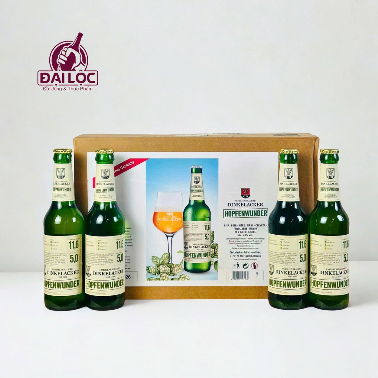 - Là một trong những chai bia được ưa chuộng của nhà làm bia Đức Dinkelacker-Schwaben Bräu. Bia Dinkelacker Hopfenwunder đem đến cho người thưởng thức một trải nghiệm khá tuyệt vời.
