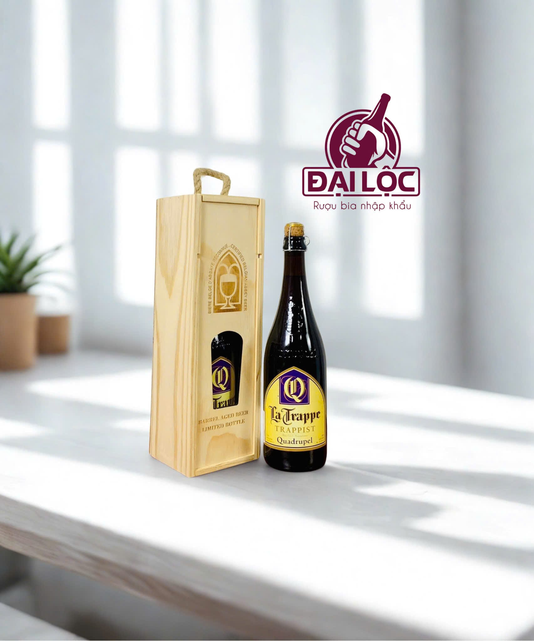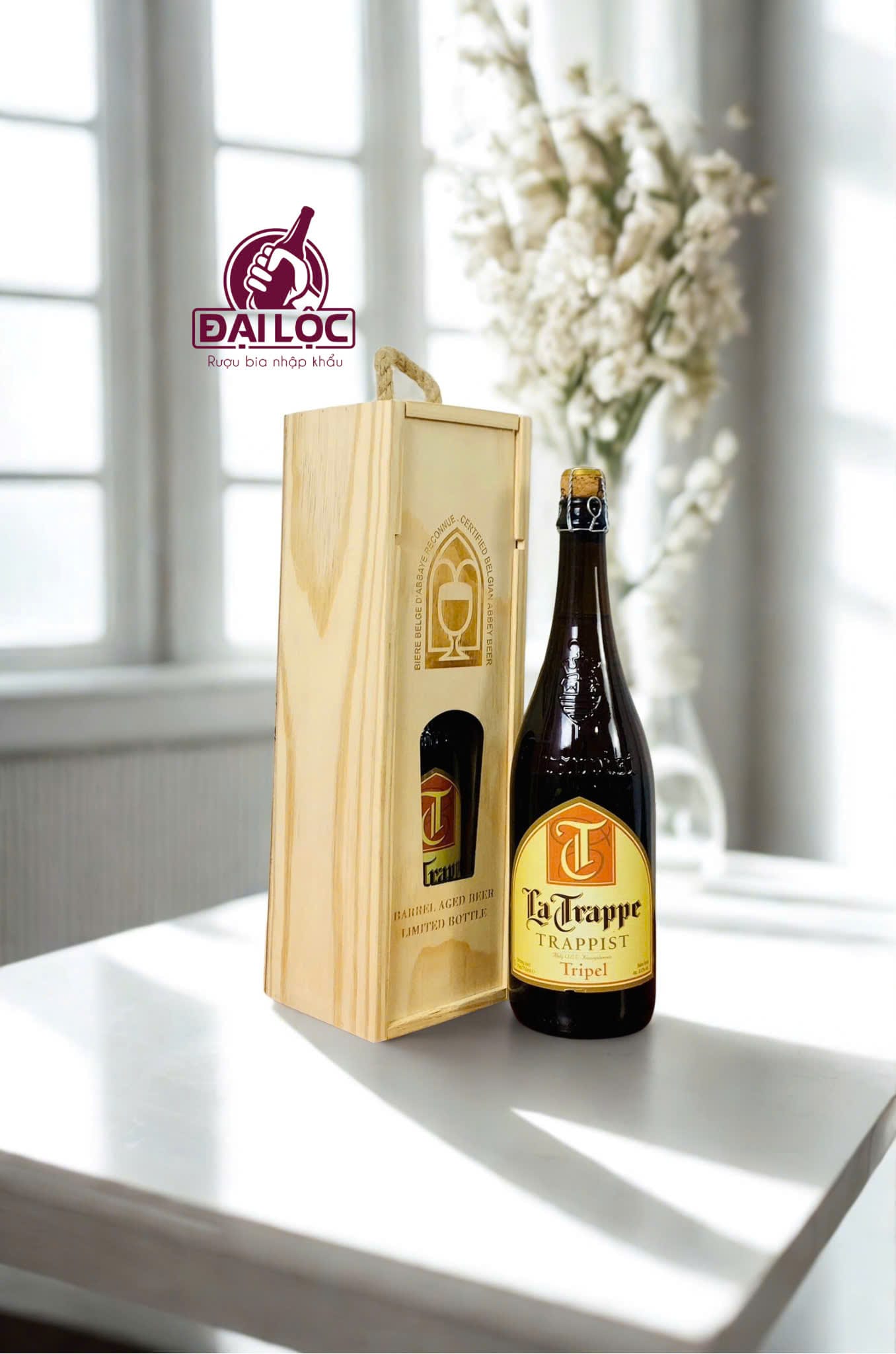 Hộp Quà 1 Chai La Trappe Trappist 750ml hộp gỗ cao cấp với 3 hương vị khác nhau